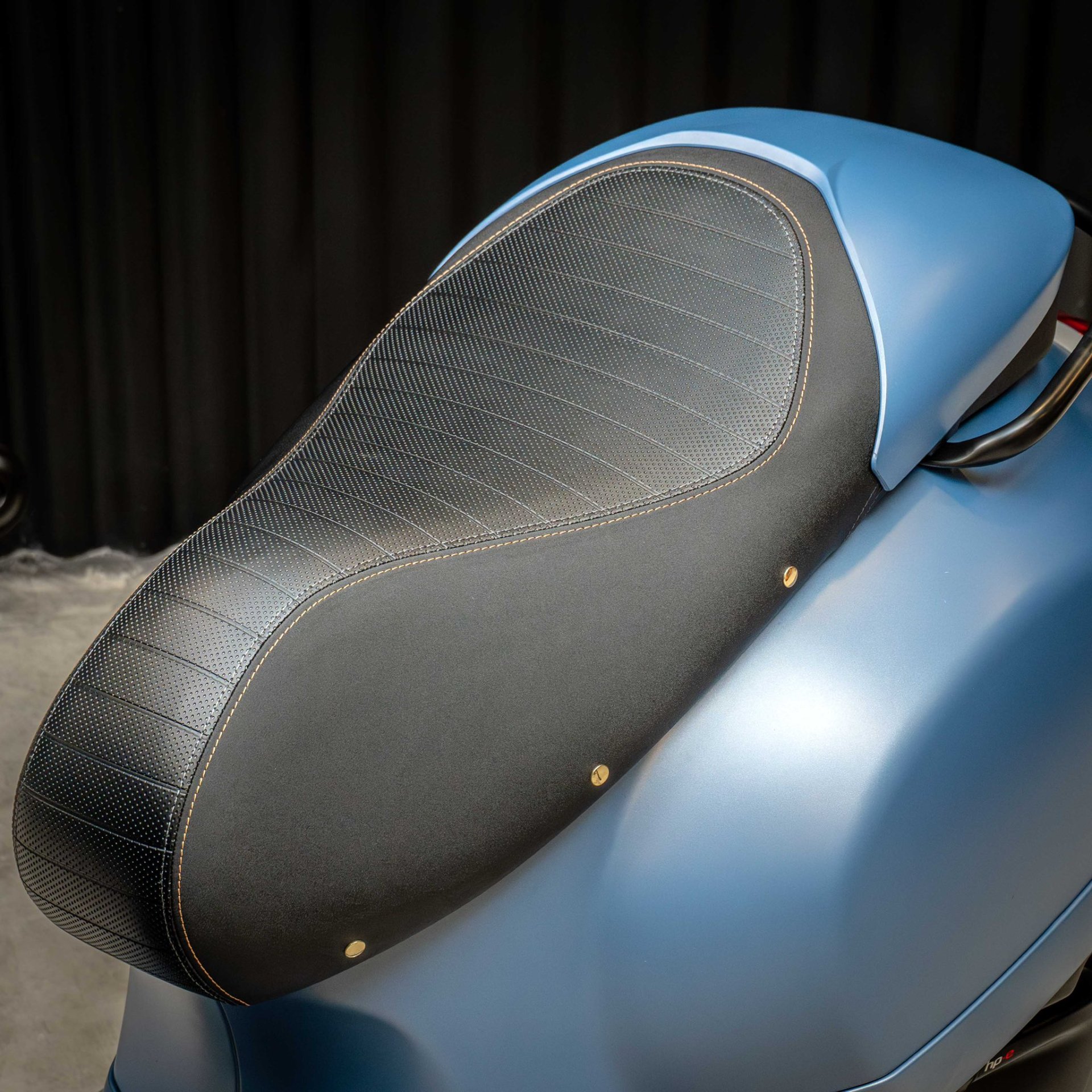 The Blu Officina 8 color draws inspiration from the Piaggio 8 Badge, a symbolic pin awarded exclusively to individuals granted access to Workshop No. 8, making it a mark of honor and heritage.